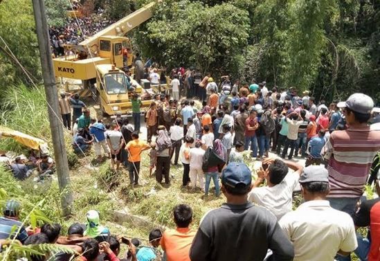 Hingga berita ini diturunkan proses evakuasi terhadap para penumpang masih terus dilakukan. Petugas tampak kesulitan melakukan evakuasi karena curamnya jurang dan dinding sungai merupakan batuan keras. Belum ada konfirmasi dari petugas kepolisian atas kecelakaan maut tersebut.