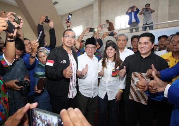 MEDAN, iNews.id – Ketua Tim Kampanye Nasional (TKN) Jokowi-KH Ma’ruf Amin, Erick Thohir menghadiri ulang tahun Konfenderasi Serikat Pekerja Seluruh Indonesia (KSPSI) di Medan, Kamis (28/1/2019). Dalam acara itu, KSPSI Sumatera Utara (Sumut) mendeklarasikan dukungan mereka kepada pasangan capres dan cawapres nomor urut 01.