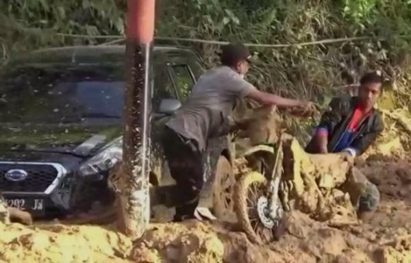 Pantauan iNews, badan jalan yang diterjang longsor berada di Jembatan Sidua-dua. Sebuah mobil dan sepeda motor bahkan terjebak dan tertimbun lumpur dalam peristiwa tersebut.