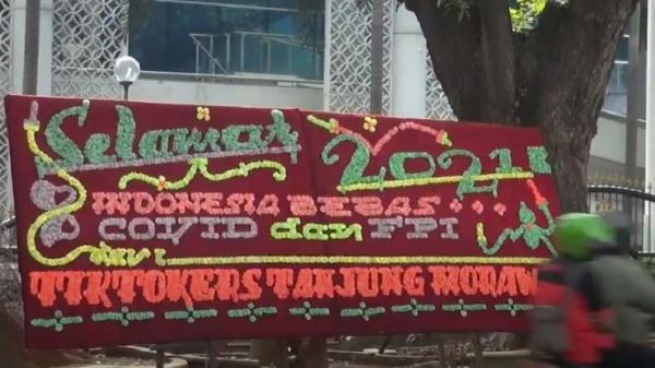 Karangan Bunga Hiasi Jalanan di Medan: Selamat 2021, Indonesia Bebas Covid dan FPI
