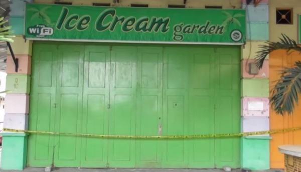 Suasana penggerebekan toko es cream Garden di Deliserdang.