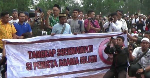 “Kami meminta pihak kepolisian segera menangkap Sukmawati. Kami juga minta agar polisi tidak mengedepankan musyawarah karena Sukmawati telah menistakaan agam Islam,” kata Koordinator aksi, Muhammad Syafii.