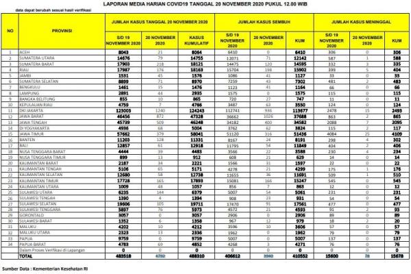 Update Covid di Sumut 20 November: Positif Tambah 79 Kasus Baru Jadi 14.755 Orang