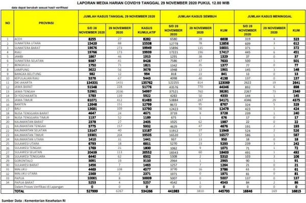Update Covid di Sumut 29 November, Positif Tambah 88 Kasus Baru Jadi 15.508 Orang